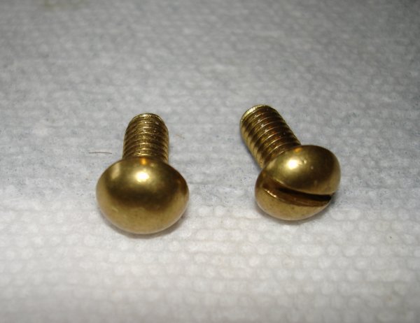 A similar thing happened to me when I was building my Goldtone banjo. In that case it was a screw that had no threads. Look here Mounting the Resonator. In this kit it is a screw with no slot in the head. Well I could not cut those threads before, but I think I can cut a slot in this screw head. Fortunately I have some needle files.