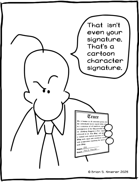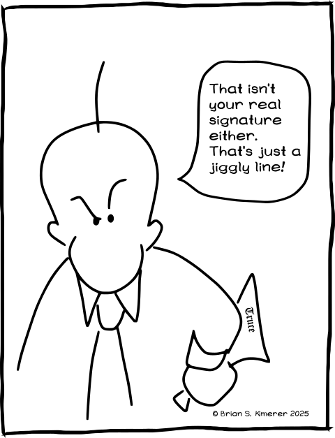 Well you signed it with a cartoon character signature. What’s good enough for you is good enough for me.